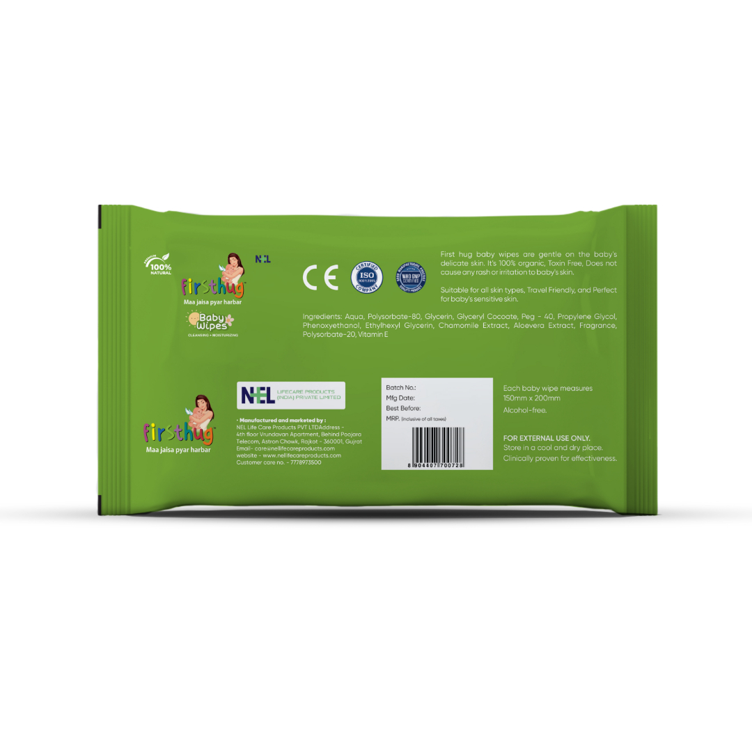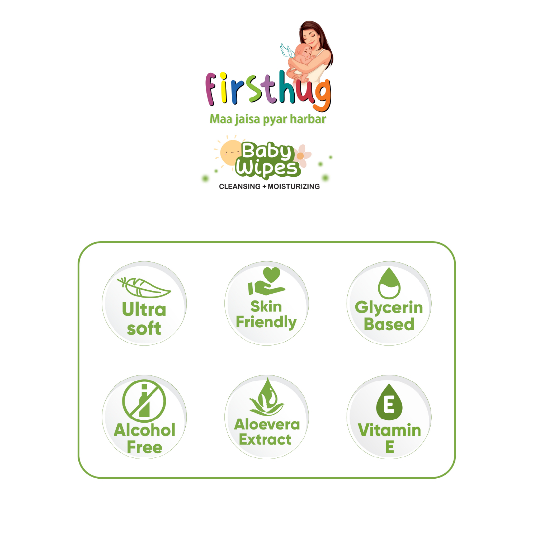 Every baby deserves a gentle touch — and that’s exactly what Firsthug Baby Wipes deliver. Infused with soothing Aloe Vera Extract and made from premium, ultra-soft fabric, these wipes cleanse your little one’s delicate skin with the perfect blend of care, comfort, and freshness.